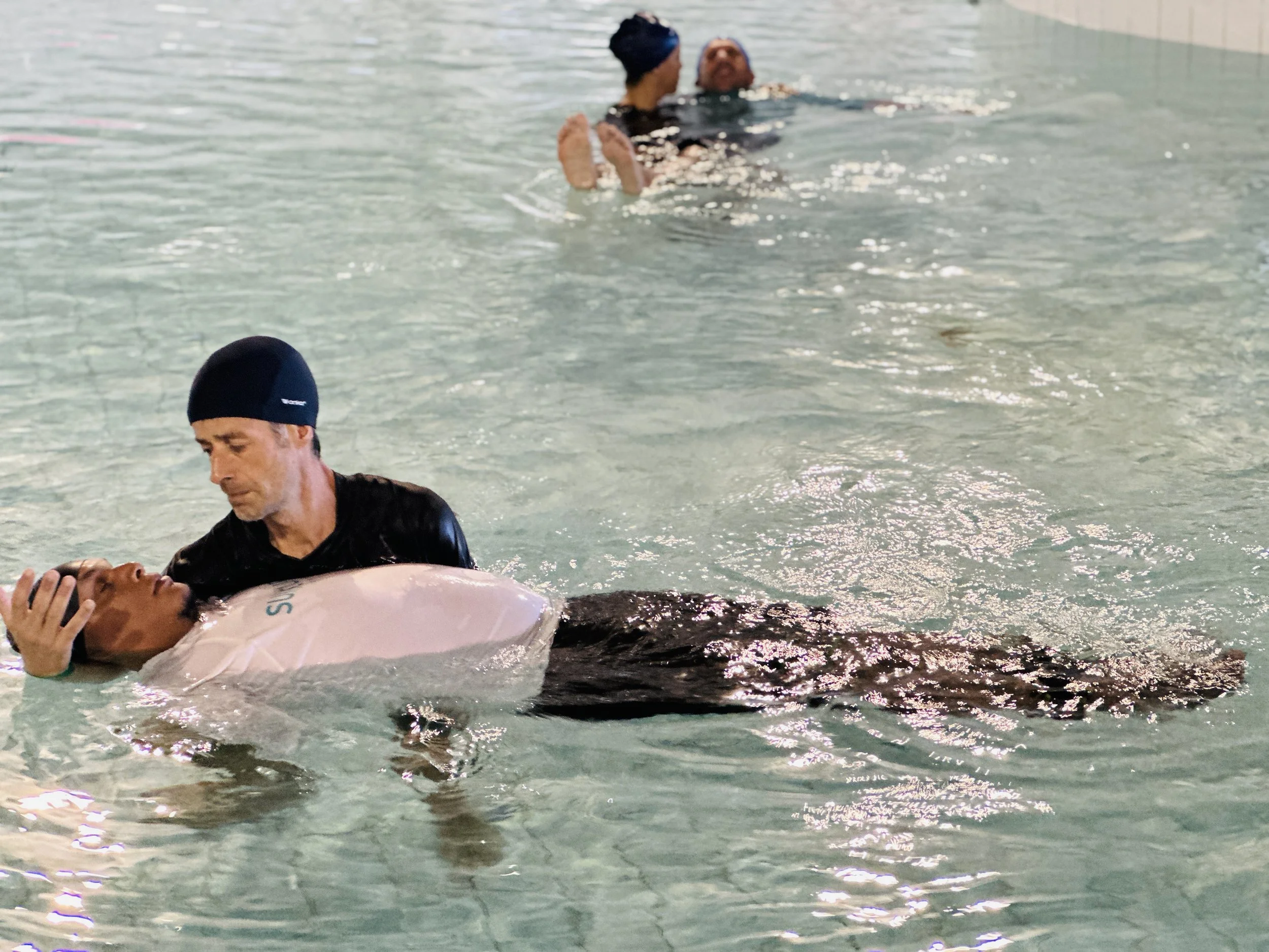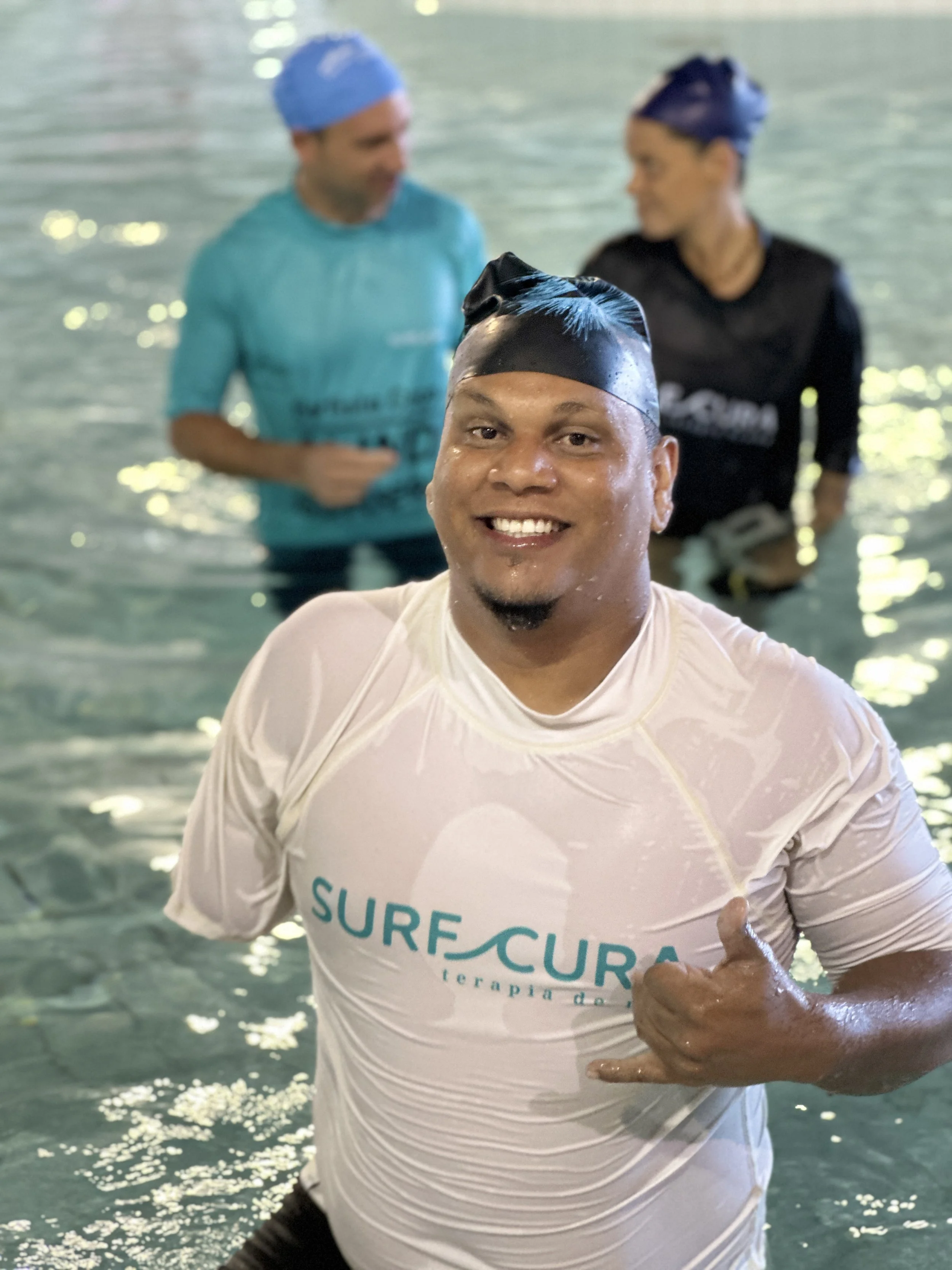 Terapia na piscina. A superar limites: Alunos com deficiência visual experimentam a alegria da terapia de movimentos na piscina. Os sorrisos nos rostos dos alunos revelam a alegria e o entusiasmo que sentem ao participar desta atividade terapêutica. A água morna e a orientação especializada proporcionam um ambiente seguro e acolhedor para que os alunos explorem seus movimentos e desenvolvam as suas habilidades físicas.